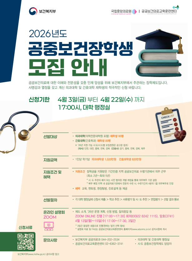 2026 공중보건장학제도 시범사업 장학생 모집 포스터.pdf 공중보건장학제도 시범사업 자주 묻는 질문(2026.3.)_최종.pdf 2026 공중보건장학제도 시범사업 장학생 모집 카드뉴스.pdf |